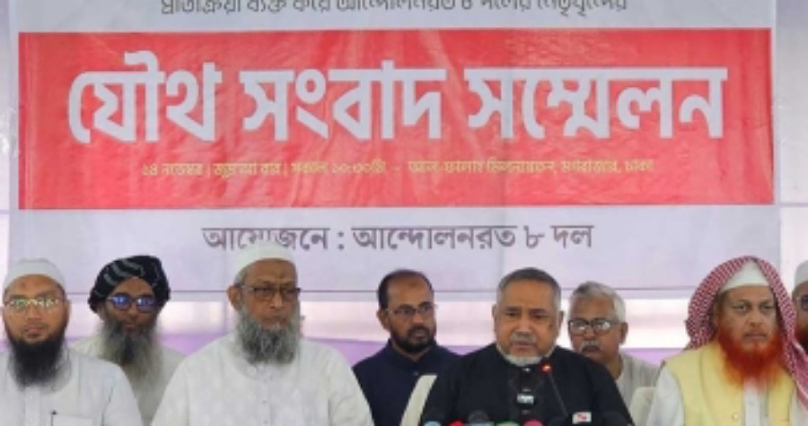 শুক্রবার (১৪ নভেম্বর) সকালে আট দলের যৌথ সংবাদ সম্মেলনে জামায়াতের নায়েবে আমির তাহের বক্তব্য রাখছিলেন।
