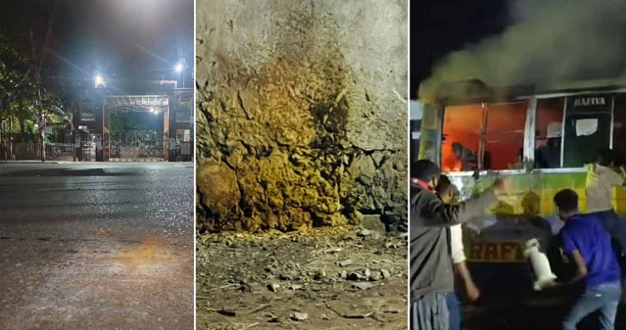 রোববার দিবাগত রাত ২টার দিকে মহাখালী এলাকার তিতুমীর কলেজের গেটের সামনের রাস্তায় ও আমতলী মোড় এলাকায় ককটেল বিস্ফোরণের ঘটনা ঘটেছে। এ ছাড়া ব্র্যাক বিশ্ববিদ্যালয়ের পাশের পানির টাংকির সামনের সড়কে দাঁড়িয়ে থাকা একটি বাসে আগুন দেয় দুর্বৃত্তরা।