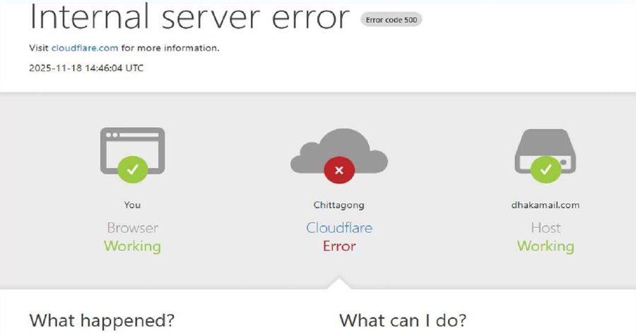 প্রভাবিত ব্যবহারকারীরা একটি বার্তা দেখতে পান, যেখানে উল্লেখ ছিল—ক্লাউডফ্লেয়ারের নেটওয়ার্কে অভ্যন্তরীণ সার্ভার ত্রুটি ঘটেছে।