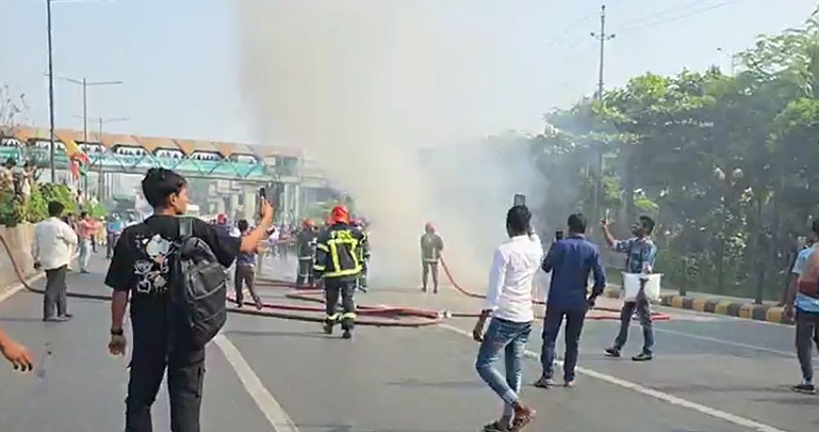 দীর্ঘক্ষণ চলার কারণে গাড়িটির ইঞ্জিনে আগুন লাগতে পারে বলে ধারণা করা হচ্ছে।