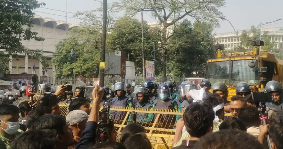 মঙ্গলবার (২৫ নভেম্বর) দুপুরে জাতীয় শহীদ মিনার থেকে রওনা দেওয়া শিক্ষার্থীদের শাহবাগ জাতীয় জাদুঘরের সামনে আটকে দেওয়া হয়। পরে সেখানেই অবস্থান নেন আন্দোলনকারীরা।