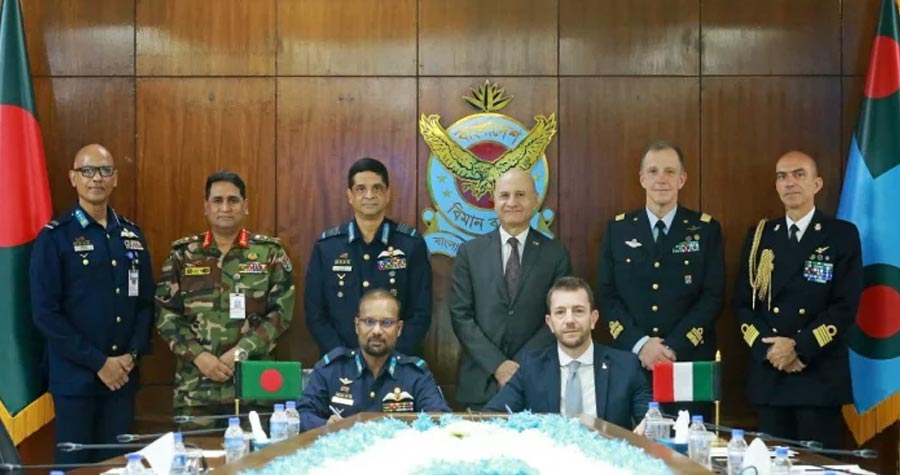 ইউরোফাইটার টাইফুন যুদ্ধবিমান কিনতে ইতালির প্রতিরক্ষা সরঞ্জাম নির্মাতা প্রতিষ্ঠান লিওনার্দো এসপিএ-এর সঙ্গে লেটার অব ইন্টেন্ট (সম্মতিপত্র) সই করেছে বাংলাদেশ বিমান বাহিনী। মঙ্গলবার (৯ ডিসেম্বর) বিমান বাহিনীর ভেরিফাইড ফেসবুক পেজে এই তথ্য নিশ্চিত করা হয়।