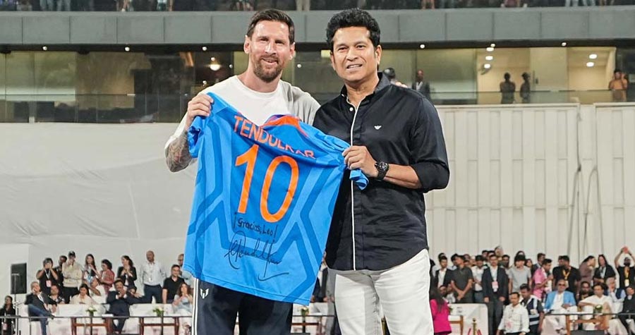 দ্বিতীয় দিন অবশ্য সুন্দর সময় কাটছে মেসির। হায়দরাবাদে দারুণ মুহূর্ত উপভোগ করার পর মুম্বাইয়ে আসেন তিনি। এখানে এসে শুধু শচীন নয়, ভারতীয় ফুটবল কিংবদন্তি সুনীল ছেত্রীর সঙ্গে দেখা করেছেন। ছেত্রীকে নিজের সই করা জার্সিও উপহার দিয়েছেন মেসি। এ ছাড়া কিছু সময় ফুটবলও খেলেছেন তারা।