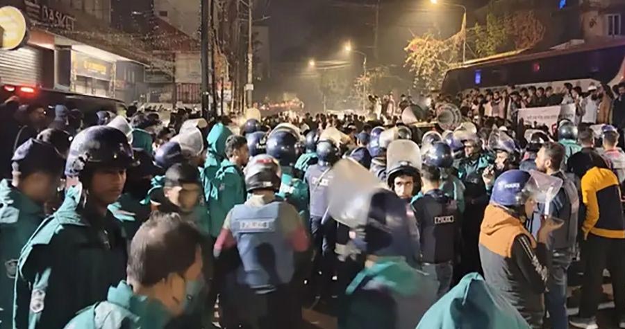 ইনকিলাব মঞ্চের মুখপাত্র শরিফ ওসমান হাদির মৃত্যুকে কেন্দ্র করে চট্টগ্রামে ভারতীয় সহকারী হাই কমিশনার ড. রাজীব রঞ্জনের বাসভবনে হামলার চেষ্টা করেছে বিক্ষোভকারীরা। এ সময় পুলিশের সঙ্গে তাদের ধাওয়া-পাল্টা ধাওয়ার ঘটনা ঘটে। এতে কয়েকজন পুলিশ সদস্যসহ এক আন্দোলনকারী আহত হন। ঘটনাস্থল থেকে ১২ জনকে আটক করেছে পুলিশ।