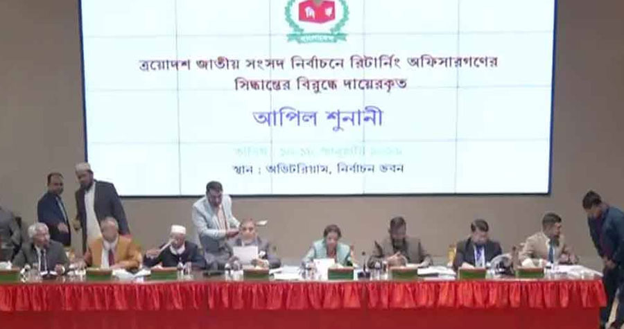ইসি সচিবালয়ের পরিচালক (জনসংযোগ) মো. রুহুল আমিন মল্লিক বাসসকে জানান, কমিশনের ঘোষিত সময়সূচি অনুযায়ী আজ ক্রমিক নম্বর ৭১ থেকে ১৪০ পর্যন্ত আপিলের শুনানি অনুষ্ঠিত হচ্ছে। প্রধান নির্বাচন কমিশনার (সিইসি) এ এম এম নাসির উদ্দিনের সভাপতিত্বে পূর্ণাঙ্গ কমিশন বিকেল ৫টা পর্যন্ত এই শুনানি গ্রহণ করবেন।