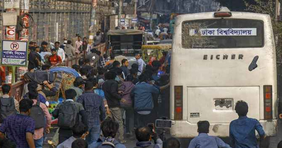 প্রত্যক্ষদর্শীরা জানান, অবরোধের কারণে বাসটি সায়েন্স ল্যাব এলাকায় আটকে পড়লে বাসে থাকা ঢাবির শিক্ষার্থী ও আন্দোলনরত সাত কলেজের শিক্ষার্থীদের মধ্যে কথা-কাটাকাটি শুরু হয়। পরিস্থিতি উত্তপ্ত হলে প্রক্টরিয়াল টিম বাসটি নিরাপদে সরিয়ে নেওয়ার চেষ্টা করে। এ সময় বাসটির পেছন দিক থেকে ইটপাটকেল নিক্ষেপ করা হলে জানালার কাচ ভেঙে যায় এবং কয়েকজন শিক্ষার্থী আহত হন। বাসটির বাইরের অংশেও ক্ষতি হয়।