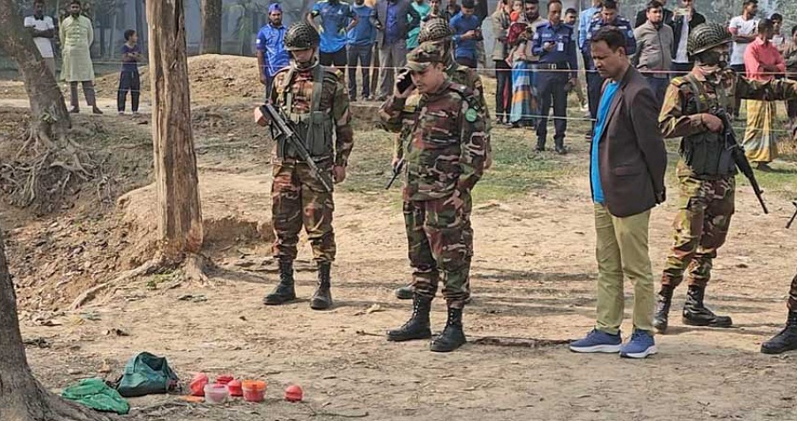খবর পেয়ে পুলিশ, পোড়াবাড়ি র্যাব ক্যাম্পের সদস্য ও সেনাবাহিনীর ৯ পদাতিক ডিভিশনের ৮ ইঞ্জিনিয়ার ব্যাটালিয়ানের সদস্যরা ঘটনাস্থলে যান। এছাড়াও বোম ডিসপোজাল ইউনিটের সদস্যদের খবর দিয়েছে পুলিশ।