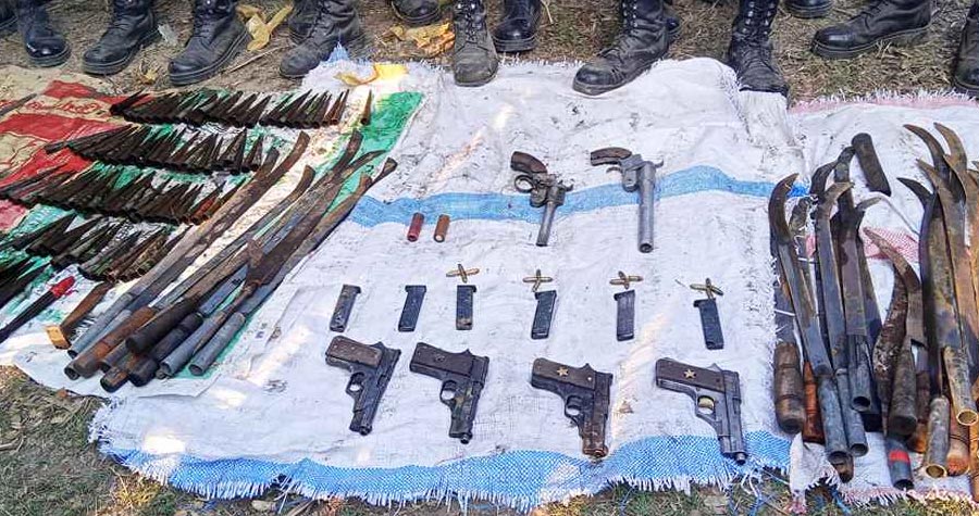 উদ্ধারকৃত অস্ত্রের মধ্যে রয়েছে যুক্তরাষ্ট্রের তৈরি চারটি অত্যাধুনিক পিস্তল, দুটি ওয়ান সিঙ্গেল গান, ১৬টি গুলি, শতাধিক রামদা, বল্লম, সরকি ও চাকু। সেনাবাহিনীর ধারণা, আসন্ন নির্বাচনে নাশকতা করার লক্ষ্যে দুর্বৃত্তরা অস্ত্রগুলো মজুত করে রেখেছিল।
