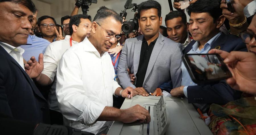 ত্রয়োদশ জাতীয় সংসদ নির্বাচনে রাজধানীর গুলশান মডেল স্কুল অ্যান্ড কলেজ কেন্দ্রে নিজের ভোট দিয়েছেন বিএনপি চেয়ারম্যান তারেক রহমান। আজ বৃহস্পতিবার (১২ ফেব্রুয়ারি) সকাল ৯টা ৩৫ মিনিটে তিনি ভোটকেন্দ্র প্রবেশ করেন। সকাল ৯টা ৪৫ মিনিটের দিকে গুলশান-২ নম্বরের ১/ডি ব্লকের ৮৬ নম্বর রোডে অবস্থিত গুলশান মডেল হাই স্কুল অ্যান্ড কলেজ কেন্দ্রে উপস্থিত হয়ে নিজের ভোটাধিকার প্রয়োগ করেন তিনি।