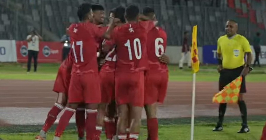 ম্যাচের ৪৩তম মিনিটে অবশ্য নিজেদের অর্ধে বল দেওয়া-নেওয়া করতে গিয়ে গোলমাল পাকিয়ে বসেছিলেন বাংলাদেশ। এরপর বল ক্লিয়ার করে সেটাকে বিপদ মুক্ত করেন তপু বর্মণ। ১-০ গোলের লিড নিয়ে বিরতিতে যায় বাংলাদেশ।