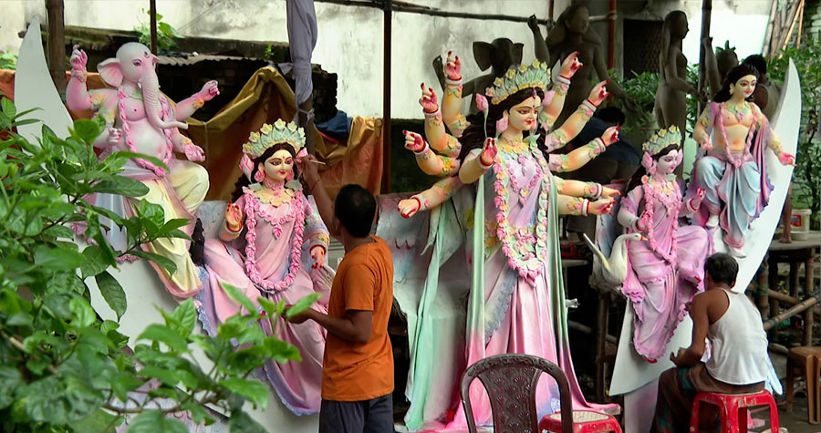 দেবী আরাধনায় ইতোমধ্যেই ব্যস্ত সনাতন ধর্মাবলম্বীরা। চলছে প্রতিমা সাজানোর শেষ মুহূর্তের প্রস্তুতি, মণ্ডপে মণ্ডপে চলছে রং-তুলির ছোঁয়ায় দেবীকে পূর্ণতা দেওয়ার কাজ। নিরাপত্তা জোরদার করা হয়েছে সবখানেই।