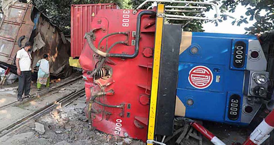 রেললাইনে ঢুকে একটি চলন্ত মালবাহী ট্রেনের ইঞ্জিনে ধাক্কা দেয় একটি পণ্যবোঝাই ট্রাক। এ সময় একটি বগিসহ ট্রেনের ইঞ্জিন ও ট্রাকটি রেললাইনের ওপর উল্টে পড়ে। ট্রাকের নিচে চাপা পড়ে নিহত হন এক ব্যক্তি।