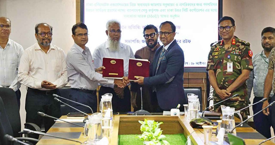 ঢাকা এলিভেটেড এক্সপ্রেসওয়ের নিচে অব্যবহৃত জায়গাগুলোর কার্যকর ও নান্দনিক ব্যবহার নিশ্চিত করতে সবুজায়ন এবং নগরবাসীর জন্য গণপরিসর উন্নয়ন কার্যক্রম বাস্তবায়নের লক্ষ্যে বাংলাদেশ সেতু কর্তৃপক্ষ ও ঢাকা উত্তর সিটি করপোরেশনের (ডিএনসিসি) মধ্যে একটি দ্বিপক্ষীয় সমঝোতা স্মারক স্বাক্ষরিত হয়েছে।